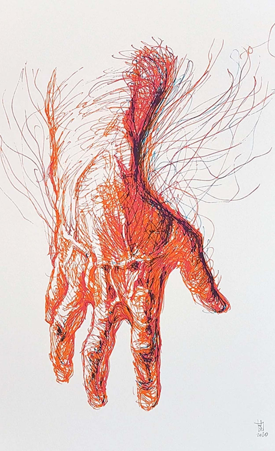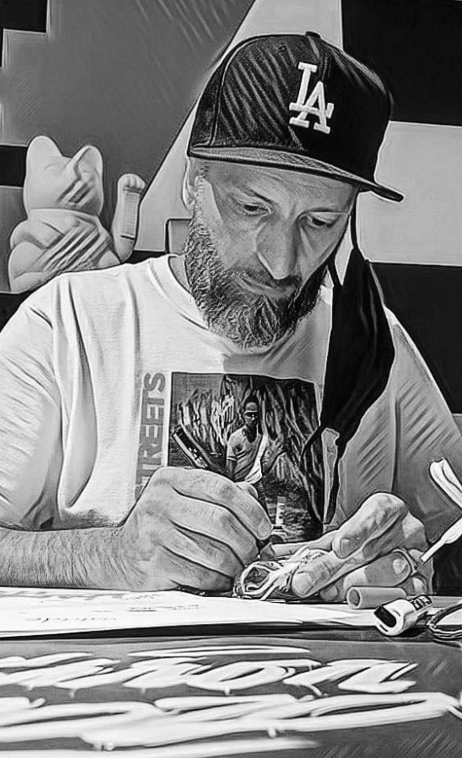 Du Tag à la Calligraphie, il découvre au travers de cette discipline un champ de créativité infini, sans règle, ni limite. Un mot, une simple lettre, provoque en lui une émotion qui va donner naissance à un nombre indéfini de variantes jusqu’à obtenir la version parfaite à ses yeux. Une spécialité artistique rebaptisé « Calligraffiti »